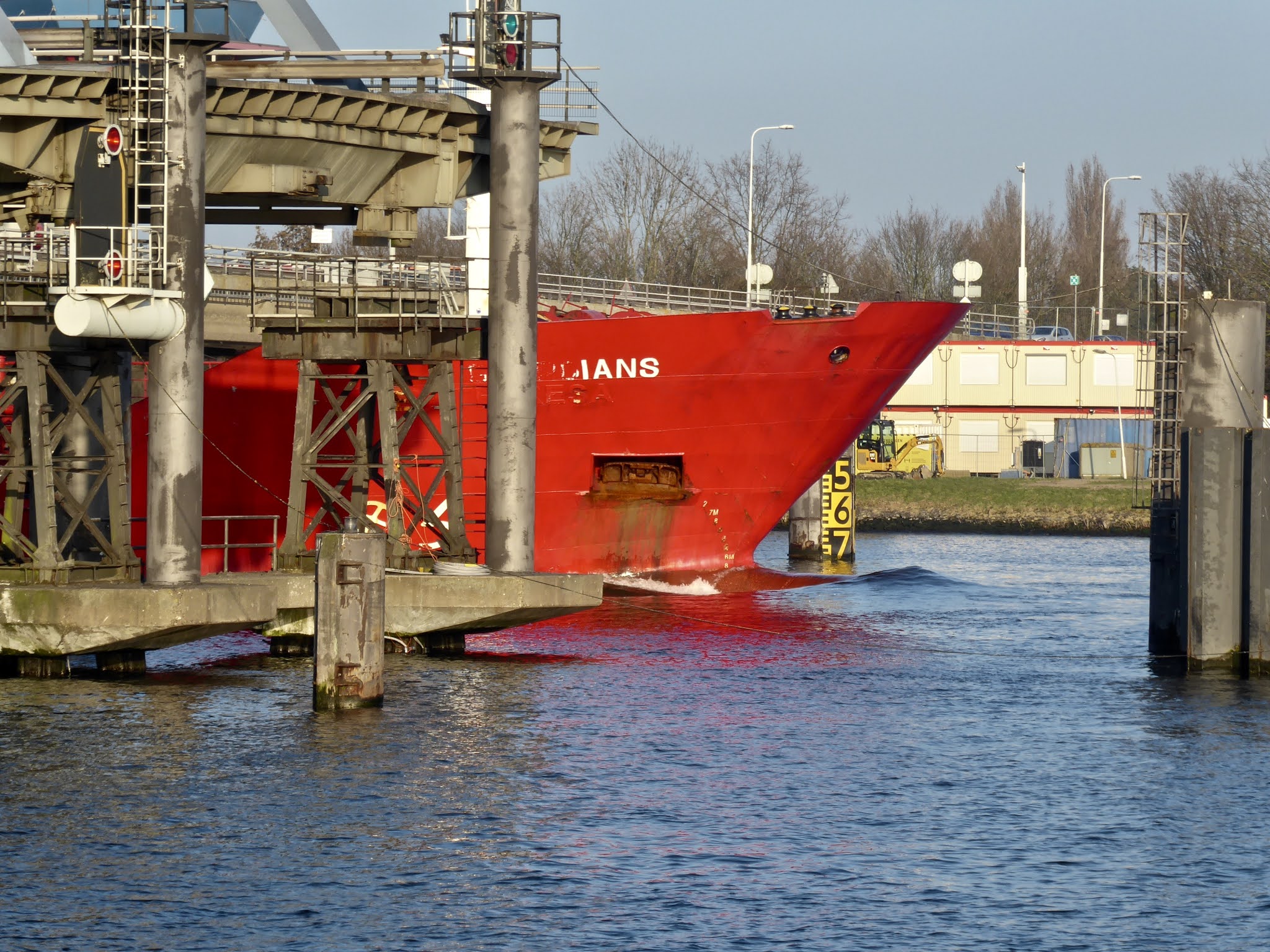 The other thing that's kept me going is my daily walk. I always take a camera with me, even if it's just my (not very good) phone, and I often walk along the sea canal, always in the hopes I'll see some of the big boys going past. Well, yesterday I hit the jackpot. I was just walking over the bridge when I noticed a queue of six vessels waiting for it to open for them. I have never seen so many, and the odd thing was that they were all lying still, hovering (if ships can do that). There must have been some kind of glitch with the opening mechanisms as they are rarely required to wait. But when I was halfway across the bridge, the bell rang and the booms came down. I'd have loved to get a better full on view of the ships from the centre of the span but I had to hotfoot it to the other side. Even then, I had to climb under the boom to escape, so I ran down to the water side to take these photos.