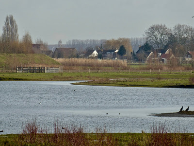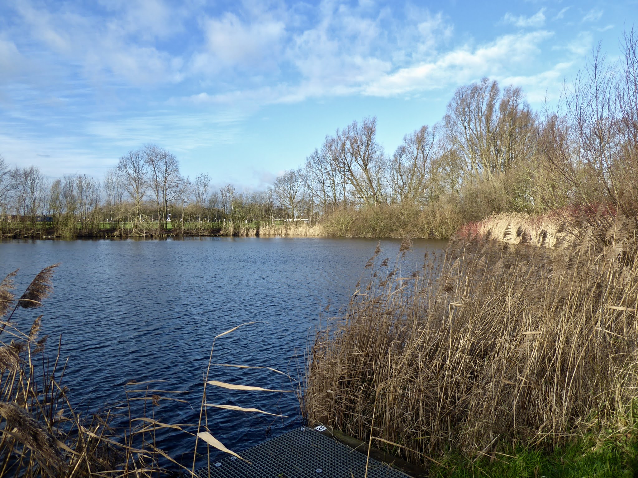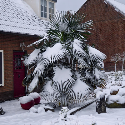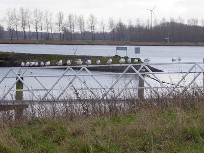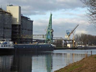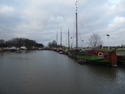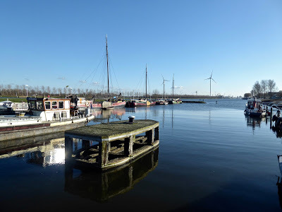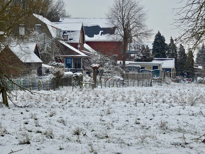 Anyway, this morning, the sky had cleared and there was even some sunshine for a while, but by the time I wanted to go for a walk again, everything had turned grey and wow was it bitter?! Koos and I agreed it was the coldest day of the year so far. We differed in our reactions, though. He likes snow and welcomes it. I don't. Of course. Even so, we had a nice wander along one of the side branches of the canal nearby but I have to admit it was a bit bleak and bone rattling.