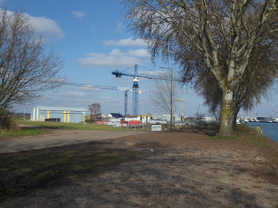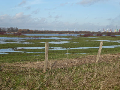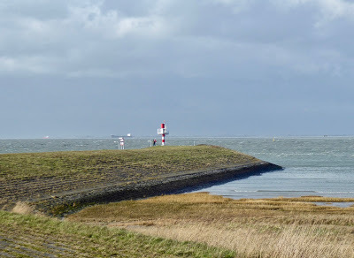 Back home again, it's been a stormy week. The weather broke on Tuesday and by Thursday, the winds were howling. We had to go to Terneuzen, so we took a walk along the estuary of the Westerschelde. It's hard to tell from the photos below, but the wind was so strong I had trouble keeping to my feet. I think you can just see the white caps on the water.