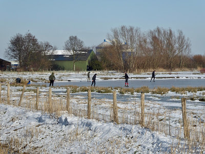 As the night time temperatures plummeted to -10C and below nationwide, the Dutch dug out their skates and gleefully dusted them off. It's been several years since there's been a freeze prolonged enough for skating on natural ice. Locally, we saw it back in 2017, but I think the last big one was in 2012. Of course, everyone gets excited about the possibility of an Elfstedentocht, that famous Dutch marathon on ice that passes through 11 towns in Friesland, but sadly, it wasn't freezing for quite long enough this year. That apart, last Friday, Saturday and Sunday, saw the Dutch glorying in their favourite winter sport, and it really was a joy to see despite the breathtaking cold. Below are my own photos taken of the nature reserve ponds not far from the crumbly cottage.