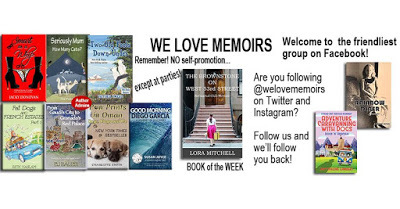 This week, though, I want to pay tribute to a group on Facebook without which I wouldn't have half the readers I do have either for my blog or for my books. That group is We Love Memoirs founded by Victoria Twead and Alan Parks, two memoir writers who brilliantly saw the opportunity to start a community on social media for both readers and authors to get together. From this group alone, I have gained many, many lovely friends across the world just by being a member of a community where reading is the glue that binds us. I've also 'met' dozens of brilliant authors, some of whom have also become dear friends in real life.