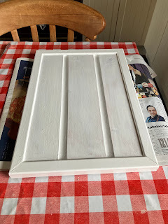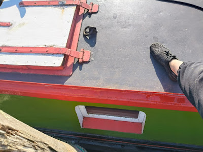 One other job I've nearly finished is to make a new cover for our rear inspection hatch on the Hennie H. It's also where we access the grease pot. I made this one from a plank I had left over from renovating the sunroom last year. The grooves aren't ideal, but I shall paint it thoroughly. It always feels good to avoid buying material and to be able to use odd pieces we have in store. I must say I'm very pleased with the result and it fits perfectly, so hopefully we won't get any more rainwater in the bottom of the boat once the old, leaky one's been replaced. When I've finished painting this new one, I'll take a photo of it in situ. This white is just primer; it will be grey in the end.