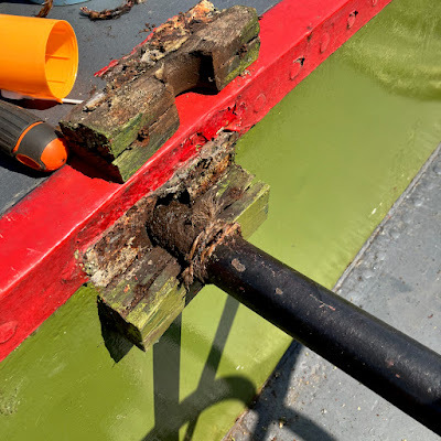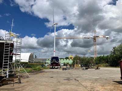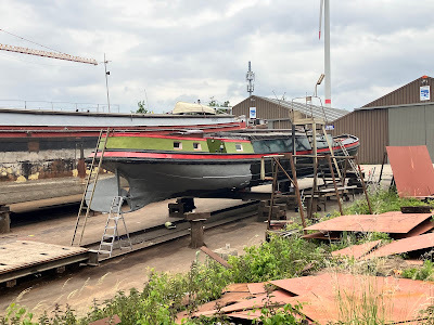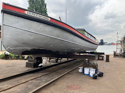 This is effectively the sequel to my last post at the end of May, so I hope you'll understand its late arrival when I say that our occupancy of the slipway was extended by more than an extra week. The delayed start was only partly to blame; there were also public holidays resulting in two long weekends for the staff at the yard. The first was what we call Hemelvaartsdag here in the Flatlands. Literally that's 'Heaven travel day', but it is, in fact, Ascension Day, which is one of several religious feast days observed here in the Netherlands. Since it's always on a Thursday, it makes sense to many employers to let their staff take the Friday off too. That was the four-day holiday at the end of May, but then the weekend of the 7th and 8th of June was Whitsun (Pinksteren here), which meant that the 9th was also a holiday. In the end, I was grateful for the extra time to work on Vereeniging, and we managed to do much more than I'd originally anticipated. The other side of that coin was being pretty tired (a slight understatement) after a more than two-week slog; hence the tardiness in writing this blog.
