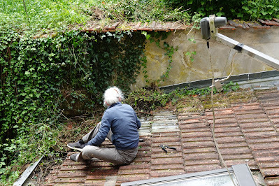 We’ll be here in France for another week doing some much needed jobs that include clearing dense undergrowth from the garden, finding out how to deal with a possible bee invasion and securing the tiles on the roof that blew off in a gale. The tiles are back on now, thanks to my wonderful, helpful daughter. Now we have to put some galvanised sidings over the edges to reduce the risk of the wind catching them again. All fun and games on an old flagman’s house in France, but the village and region are so beautiful, it’s all worth it!