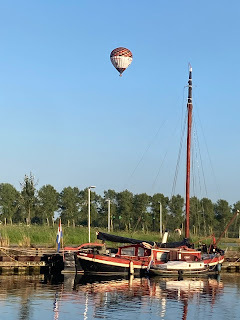 Anyway, back to the journey itself. We left our home harbour on Monday, August the 5th, but we didn't get very far that day. There were things we wanted from Vereeniging and other items we decided to leave behind, so we spent the first night moored up next to her to collect our tiny rowing boat (always useful in case something gets tangled in the propellor), some extra fenders and other sundries, which we swapped with things we didn't need, such as the de-humidifier. The weather was set to be lovely and we took it as a good omen that we saw a hot air balloon drifting over the harbour.
