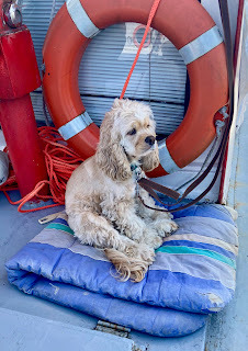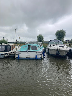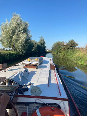 Long saga short, the wind was blowing hard and one of us...ahem...forgot to attach a retaining rope to the barge we were lying alongside, so with only one rope at her stern to pull her across, her bow was blown round and out into the harbour. Pulling it back in would have put the god, Atlas, to the test, let alone two humans of a certain age, one with dodgy knees and the other with a rickety wrist. That 'ten-minute job' ended up being nearly two hours even with the help of a kind soul who happened to be watching and ended up taking much of the strain. Of course, we won in the end, and we both realised that hindsight is about the only good thing we could have taken from it, especially as we were both shattered by the time we'd sorted all the ropes out and tidied the decks.