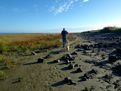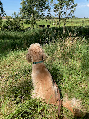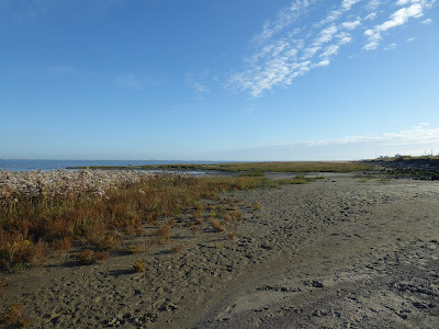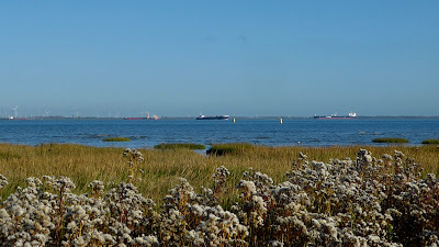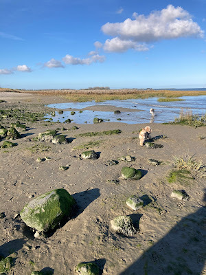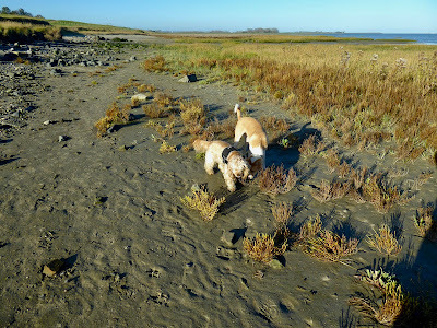 We happen to live close to the Westerschelde (Western Scheldt) estuary and it's a lovely place to take the dogs for a walk. The spot where we like going best is just to the west of Terneuzen where it's a cross between beach and tidal marshland. When the tide comes in, the land is mostly flooded but at low tide, there are large areas of grasses, tiny creeks and wild plants – great for doggy snuffles, with their pools and rivulets. You can see a little of what I mean from this Google map satellite view here.