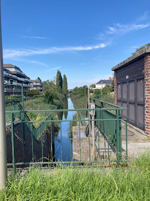 My apologies for the delay again. I can barely believe it's over a month ago now that we were on the boat in Belgium. In my last post, we'd reached Roesbrugge on the upper IJzer, a small town, but one of some significance as it lies close to the border with France and has a long history dating back to the 13th century. What brings the town to the news more often, however, is the flooding that occurs now and then and for which the upper IJzer as a whole is known.
