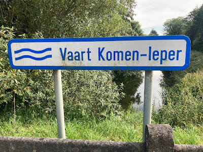 Once we'd settled, I left Zoe in Koos's care and trudged off to the Aldi with my shopping trolley. At only a kilometre from the boat, I counted that a blessing and, even better, the walk along the old, unfinished canal from Ieper to Komen was a treat. Apparently begun in 1864, it was never completed because they needed to dig a tunnel through a ridge whose (probably sandy) composition meant it kept collapsing. They even attempted to raise the canal by means of locks, but they were unsuccessful for the same reason and attempts were abandoned in 1913 before WWI broke out. It seems such a shame because it would be a terrific short cut for boats from Ieper, Diksmuide and Nieuwpoort through to Wallonia and France. The current way around is roughly 150 km from Ieper. Had the canal been completed, it would have been a quick 15 km to reach the same point on the Leie river.
