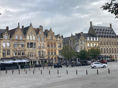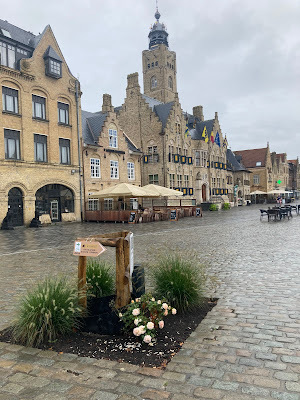 We walked back to the boat through the city centre and I was amazed at how grand and how beautiful Ieper was. I honestly thought I'd been to Ieper before but realised I'd only ever walked around the marina and its environs. There was so much I hadn't seen, so I took myself and Zoe for a good walk around the centre in the morning before we left so I could absorb some of its ageing beauty and Flemish elegance. Much of the centre was badly damaged during the war but has been rebuilt faithfully and it would be hard to tell now what is original and what is post war. Here are some of the photos I took of the centre.