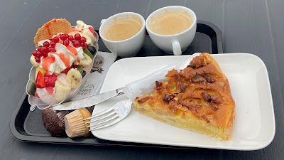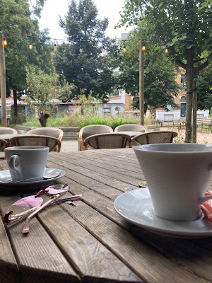 It seems improbable but I can't help thinking Zoe was affected by the vibe there too. She refused to go for walks along the towpath and I was limited to taking her up to the patch of grass at the top of the steps. Maybe she sensed something lingering in the soil. Who knows? Anyway, that evening, we did manage to persuade her across the road to go for coffee and ice cream at the Steenstraete Eetcafé and very good it was too.