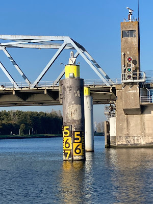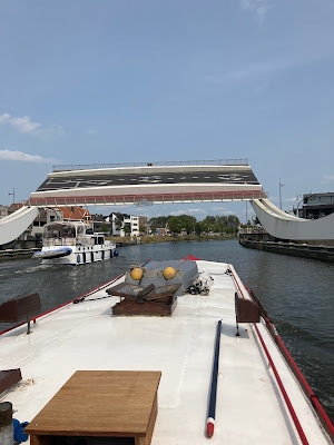 The following day, we turned down the canal from Plassendale to Nieuwpoort, where we had to arrange what is called a 'blokvaart', meaning you call the bridge keepers and at a designated time, you can start proceeding through all the lifting bridges on the canal. I forget exactly how many there were, but by lunchtime, we'd been through at least six before we reached Nieuwpoort.