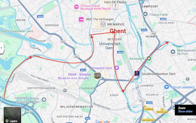 the Muinkschelde and finally left into the Schelde/Scheldt