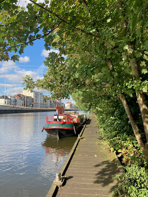 The photos below are of our spot in the Brugsevaart in the neighbourhood of Brugse Poort in Ghent. It was lovely to discover a new area, firstly in the evening when I walked to find a supermarket and met a very friendly chap who chatted to me at length about South Africa (he'd noticed my Africa pendant). We then had a calm night and enjoyed walking through the environs in the morning, meeting an array of charming people and delighting in the particular city atmosphere that makes Ghent so special.
