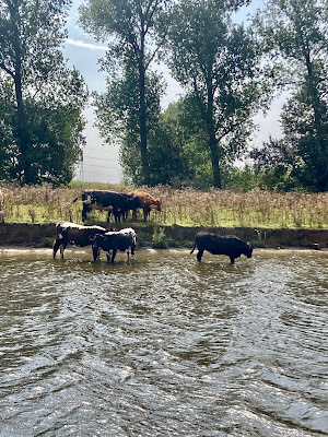 Koos and I both agree it is one of the most beautiful waterways in the country, and maybe even in the whole region. It really is breathtakingly lovely, an impression emphasised by such rural scenes as these cows in the photo below sloshing around in the shallows.