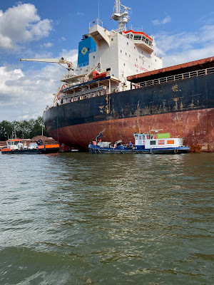 Today, with all the fun over, we decided to move Vereeniging back to her spot again. Well, that was a different story and something of a comedy of errors. We decided, for some reason best known to neither of us, not to use the engine and just to haul her over with ropes, which wasn't the best decision we've ever made...