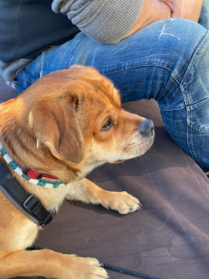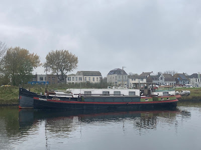 We'd only just settled in when we heard a cheerful 'hello' and a tap on the roof. Zoe did her part to defend the realm but she stopped as soon as she saw the friendly face peering in. It was a dear friend from Australia. We'd met Jo and her husband Peter in Thuin back in 2018 and saw them again two years ago on the Schelde at Kerkhoven. It was such a coincidence and a thrill to see them here in Diksmuide. Arrangements were instantly made to have dinner at theirs (Jo is a superb cook), so with Zoe as auxiliary guest, we spent a wonderful evening of yarns and laughter catching up. At our age, of course, health always enters the discussion, so if you get to read this, Jo and Peter, I very much hope yours will remain good in the coming year. It was fantastic to see you again.