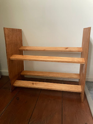 Then on the 6th, Koos went off on a photo trip to Slovakia, which gave me some fun time painting walls, clearing clutter and working on the boats, in between my lessons of course. All of this work was facilitated by having dreary weather, and I was particularly pleased with the little shoe rack I made from pieces of scrap wood we had in store.