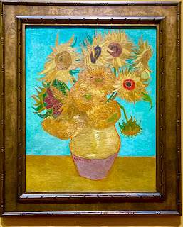 It was such a privilege to be able to go. Van Gogh is probably my favourite artist of all and I can't thank my sister enough for arranging it. Despite reserving a time to enter, it was incredibly busy with crowds of visitors but such a joy to see Van Gogh's incredibly masterpieces all together. Of course, his series of sunflower paintings was a huge draw. I managed to snap the one below, which I now know is one of the paintings that was recently assaulted with soup during a Just Stop Oil protest. It was apparently undamaged and put back on display just hours after the attack.