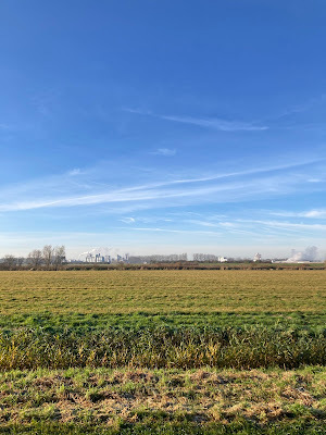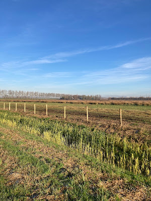 When I've been free to get out into the open, I've enjoyed walking with Zoe in the nearby nature reserves. The scenery in the last week has changed from autumnal to wintry, thanks to a major hoolie that blew away the the last leaves that were clinging to the trees.