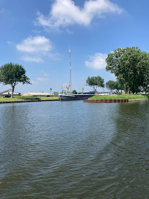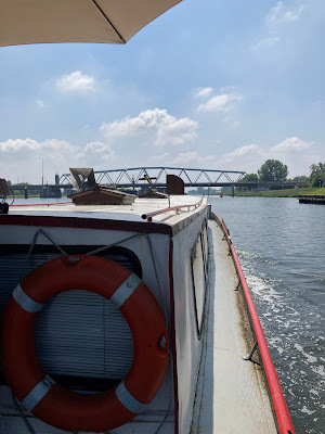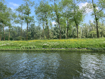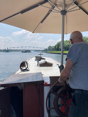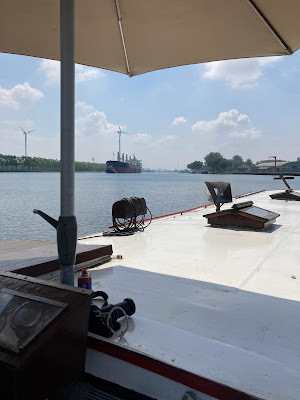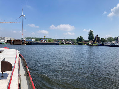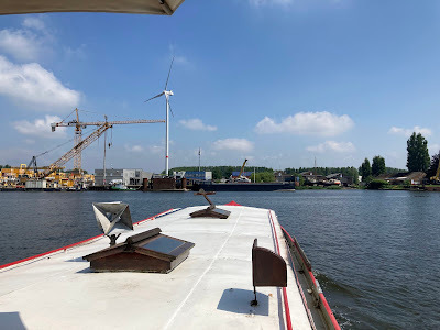 Well, that about sums up our short boat trips. We don't go anywhere in particular, and we enjoy being a bit aimless. A spuddle might be just a few turns around the harbour (as when I had my old rowing boat), or it might be what we did on Sunday, which was to do the few kilometres from our harbour to the Belgian border town of Zelzate. In essence, we are faffing about on the water for the fun of it, and apart from enjoyment, there's no real purpose to our faring.