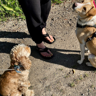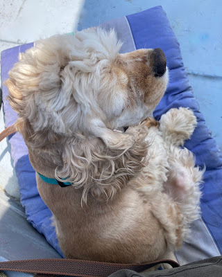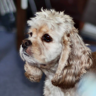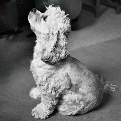 And lastly, Zoe has had a summer trim, thanks to my daughter who is an expert spaniel groomer. She even has the little 'skirt' that show dogs have – not that she's impressed. She's actually not very happy at losing the protective fluff under her tail, and keeps running away from herself, poor baby. I'm hoping the sensitivity will wear off soon and she'll be back to her normal self. The shorter coat will definitely keep her cooler, though.