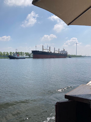 Just before the bridge at Zelzate, we'd crossed the border into Belgium, so now it was time to turn back. Our trip was quite impromptu and we didn't have all our papers for going 'abroad', so to speak. Koos did a big U-turn in front of the ship yard you might be able to spot in the photos below.