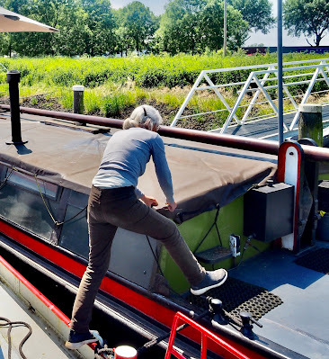Anyway, whatever the pundits say, I haven't been able to paint the back deck on the Hennie H until this week and even now, I'm having to do it in small sections. Maintenance is merciless and water is the worst weatherer you could imagine. If I could find some way of covering up both barges during the winter, I'd do it. Wouldn't if be great if I could wrap them both in cling film the way the airports wrap our luggage? I'd love that although I'm not sure how our harbour masters would feel about it. A plastic vacuum-packed barge that looks like a huge caterpillar cocoon wouldn't quite fit the image of a historic harbour, would it?