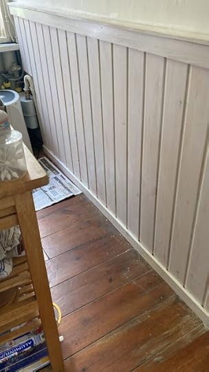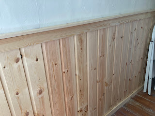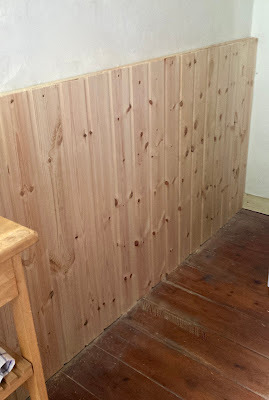 That aside, I've had to release my pent-up fidgets indoors, so I embarked on the big kitchen wainscoting project (Thanks to Dale Foster for reminding me of the correct word. I'd forgotten it through lack of use). In truth, it's not such a huge project as the length of the wall is only three metres, but ideas about putting it in our living room as well have emerged, so it could well grow.