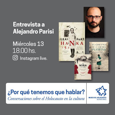 Ayer tuvimos una lindísima charla con Jonathan Karszenbaum, director del Museo del Holocausto de Buenos Aires, sobre Mira, Nusia y Hanka, las protagonistas de El ghetto de las ocho puertas, La niña y su doble, y Hanka 753. Fue el inicio de la nueva sección de entrevistas del Museo "¿Por qué tenemos que hablar? Conversaciones sobre el Holocausto en la cultura". Gracias a Brenda, Eliana, Jonathan por la amabilidad de siempre, y por la invitación. Les comparto el video de la entrevista: