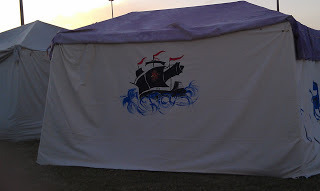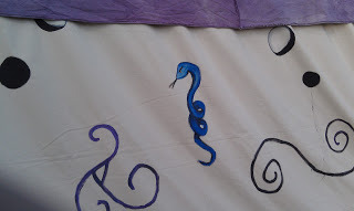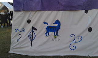 Here are a few pictures of the tent I made from scratch and yes, I painted it too!This is the back with a stylized painting of the Black Phoenix -the name of my ship since I play a privateer and assassin.