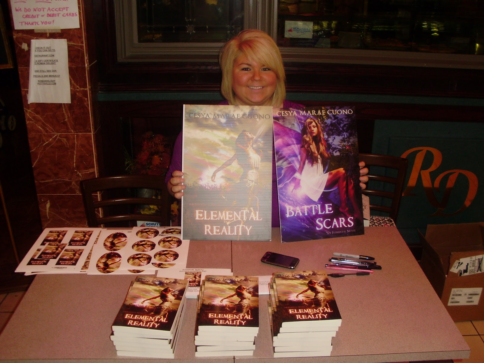 Hey all! I've decided to hold a giveaway in celebration of the new year. What am I giving away, you ask? That is a very excellent question. I will be giving away four signed book cover posters to three lucky winners. Why only three winners? Because 1st prize gets a signed Elemental Reality AND Battle Scars poster. What do you have to do to win? Follow me and fill out the form below. I'll be accepting responses from now until New Year's Day at 11:59pm EST. Winners will be announced on January 2nd. Don't forget to share this with others who might be interested in winning. Good luck to everyone!