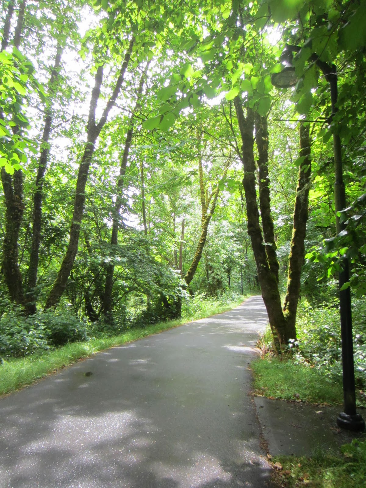 And then the trail opens up as it reaches the bridge that crosses the Willamette River (another scene from the book).