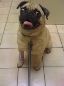 1) Remember when Pug #1 ate all that gum with xylitol and promptly poisoned himself? And I shelled out over a thousand bucks to save his neck at the animal ER? His follow-up appointment was this week. Liver test: all clear. He's healthy as a horse. Or a dog. Either way, he's healthy. See him showing off at the vet? Little bastard.