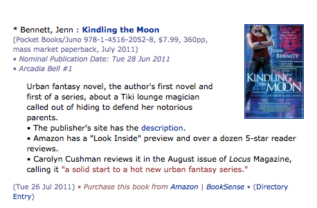 The August issue of Locus Magazine says some nice things about KINDLING ("a solid start to a hot new urban fantasy series"):