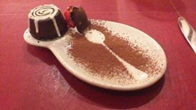 Chocolate cake with ice cream and a dollop of vanilla - Milan, Italy. Beautifully plated. Gordon Ramsey would be proud.