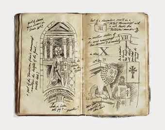 Another awesome favorite is from The Last Crusade—Indiana Jones’ father’s diary. How cool was that little book, also known as the Grail Diary? It held maps of neat little places in Jordan, like Petra. Pencil rubs from tombs of the Knight’s Templar. Everything a treasure hunter needed.In the television series Alias, there was the Rimbaldi manuscript. The most famous page of that book was “Page 47” – the one Syd replaced at Sloane’s house. I was sure she would get caught!