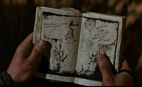 It contained the most famous passage of the entire Alias series. Here’s the quote from The Prophecy. "This woman here depicted will possess unseen marks, signs that she will be the one to bring forth my works, bind them with fury, a burning anger. Unless prevented at vulgar cost, this woman will render the greatest power unto utter desolation."And finally, there was the Book of the Dead in The Mummy. It was a creepy book opened with the awesome star-shaped key. Gah, I love these props.