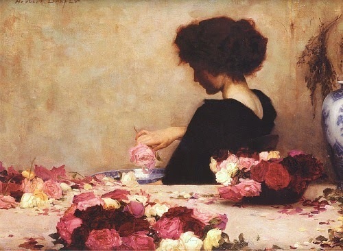 Here’s the recipe: “Put roses into water and add one or two drips of vitriolic acid. The water assumes the color and becomes impregnated with the aroma of the flowers.”
