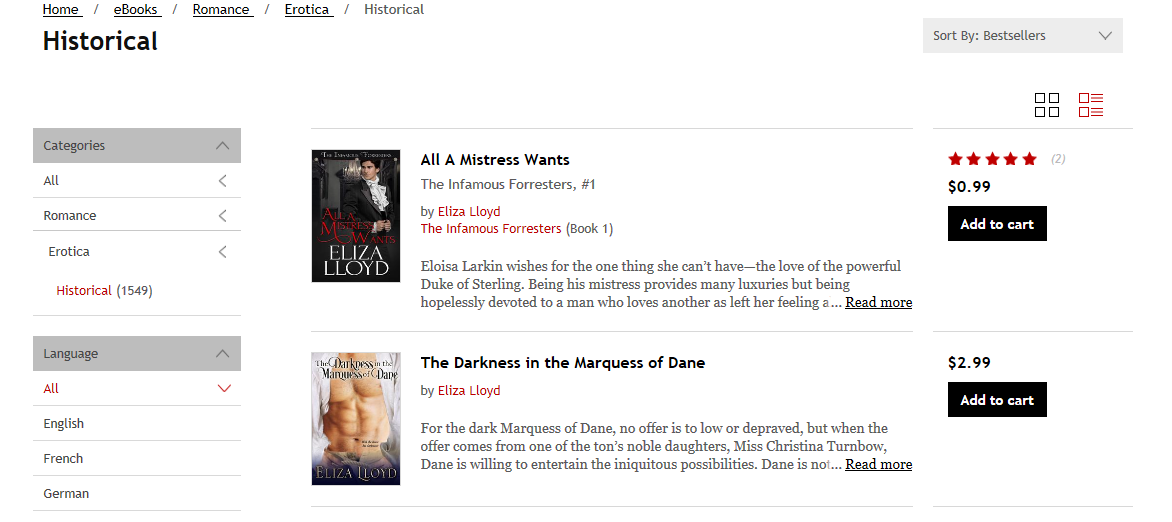 One of the best things about writing is making a "list." Granted there are a lot of lists, but this one below is a little bit extra-special for me. It's over at KOBO. Since last night, All A Mistress Wants is at number 1 in the Historical Erotica category. This morning, The Darkness in the Marquess of Dane joined it at number 2!