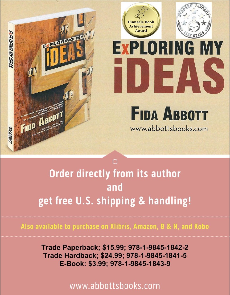 has joined the roster of the Summer 2019 Pinnacle Book Achievement Awards that has been given for more than 35 years now. Fida Abbott's self-published book was one of those that were honored by NABE to some of the finest independently-published books in a wide variety of different fields in sixty categories including Children's Interest, Business, Novel, Memoir, Self-Help, Health, How-To, Cooking, and many more.Designed to fire up readers’ interest, Exploring My Ideas provides a perspective that is enlightening and inspiring and occasionally challenging to the readers’ perspective as they travel along the path toward understanding what makes them all tick in the way they do. Abbott uses her talent to teach readers about publishing short stories while adding their own story about how they got to the point of being published. Ten short stories about psychology, crime, relationship, family, horror, and others, and author commentaries from a multicultural population is a somewhat unique approach to this type of project that only adds insight to the efforts of readers who will benefit from the lessons learned. Exploring My Ideas is an ideal book for those who love literary collection and all writers who write as a hobby or a necessity, especially for beginning-aspiring writers.