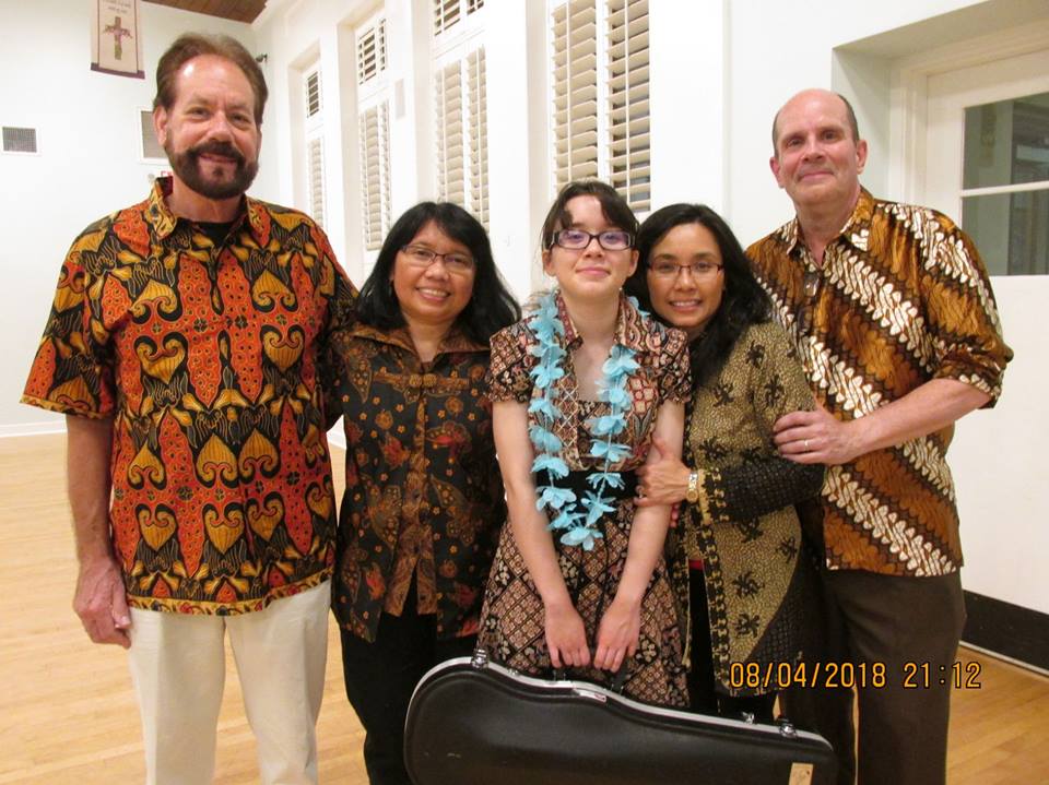 From left to right: Ken Phillips (Yunita's husband), Yunita Phillips, Ariel Abbott (Fida's daughter), Fida Abbott, and Gregory Abbott (Fida's husband)