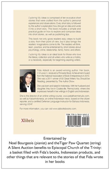 Fida will share her story about how she wrote her first novel, Enthusiasm , based on her own true story written on her second language and won Pinnacle Book Achievement Award from the National Association of Book Entrepreneurs. Enthusiasm has been translated and published in Indonesia by an Indonesian publisher: Yayasan Komunikasi Bina Kasih (YKBK)Book will be available for purchase during the event with 20% discount from retail price. One dollar for every book purchased will be donated to Coatesville Area Public Library.(*)