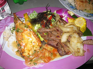 After eating, it was still kind of overcast and drizzling, but the air was warm and humid. We decided the best thing to do was to go swimming at the beach in front of our rental. The water was a little chilly but overall still warm enough to enjoy. However, there was just one problem. I'm a swimmer, and by swimmer, I mean pools of crystal clear chlorinated water with no creatures or growing barnacles. I hate barnacles. And corals. And salty water. The rocks were furry. Gross. Nevertheless, I still enjoyed the swim.