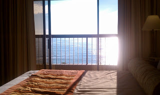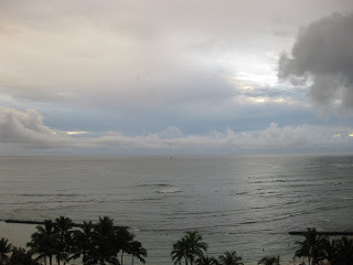 We stayed at the Aston Waikiki Beach Tower, which is gorgeous by the way. It's pricey, but doable if you split with friends like we did. The entrance was hung with vining flowers and the view from my bedroom and the living room was the ocean. I could have sun-tanned in my bed if I had wanted to.
