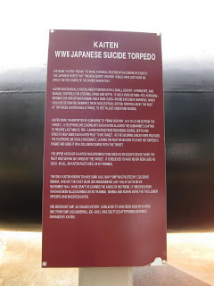 The new fact I learned that day was that the Japanese in WWII not only had flying suicide bombers, they also had Kaitens--manned torpedoes. Fortunately for us, only one of these suicide subs caused substantial damage on an American vessel.