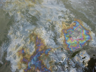 If you look closely at what looks like just pictures of muddy water, you can see the rusted ship remains outlined in the water. The last time I was at this memorial, I was a teenager, which was about a decade and a half ago. There was oil leaking out of the Arizona then and there's still oil leaking out of it now. I always felt like it was like it was still bleeding.