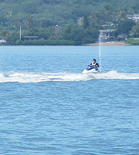 After jet skiing, we went snorkeling in Hanauma Bay. It was disgusting. Anyone within earshot of my snorkel would have heard me spitting in disgust at all the nasty coral growth on the ground and blegh-ing at being swarmed by fish. I did have fun swimming after a strange pair of fish, one large and pink and the other small and blue, but overall I felt like I was mucking around in a fish tank that has never been cleaned. I'd do it again, though.