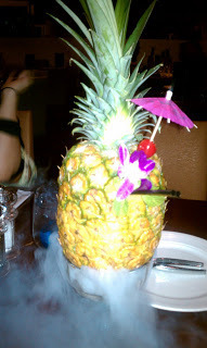 We ended the day with a buffet at the Oceanarium, a restaurant that has a large fish tank in the middle. I finally got my smoothie in a pineapple, and a smoking one no less.
