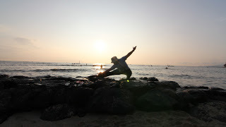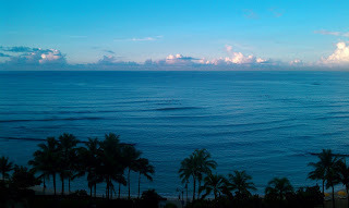 We spent the rest of the afternoon swimming in the waters of Waikiki beach, and I realized that the water was shallow for like a mile out into the ocean. I rented a boogie board hoping to "catch" some waves, but the waters were so gentle, I realized I'd actually need some skills to do any type of surfing. When I was on a boogie board Huntington Beach So Cal, a wave caught me and propelled me to the shore, so I had expected the same thing here. Guess I should have gone to north shore, which is where everyone said all the big waves were during the winter season at Oahu. Despite the icky salty water and disgustingly slimy rocks, there are few things more beautiful than staring out at the sunset while floating in the ocean. I felt like I was in that CG penguin movie Surf's Up and the New Radical's song "You Get What You Give" started playing in my head.